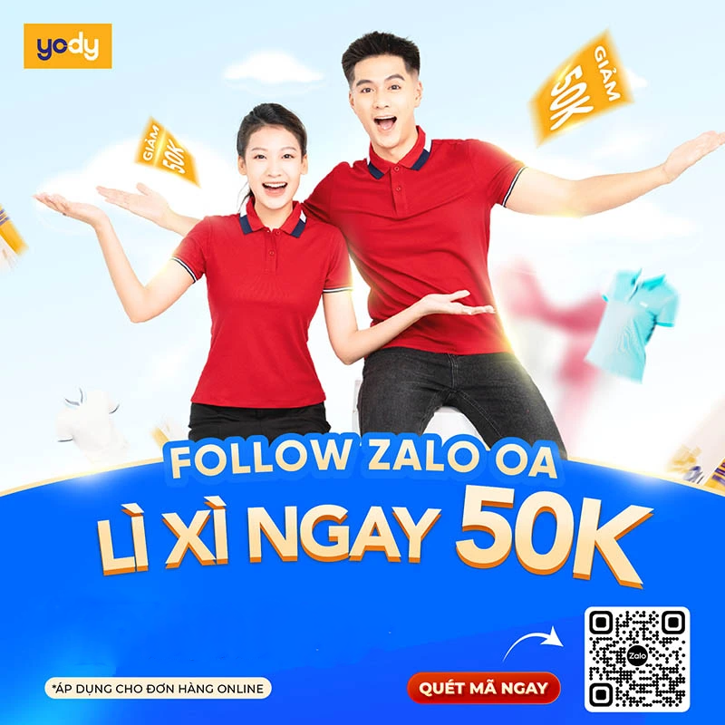 Với chương trình "Kết nối YODY, Trao gửi yêu thương", YODY muốn dành riêng cho bạn một món quà đặc biệt - một Voucher trị giá 50K. Chỉ cần theo dõi Official Account của YODY trên ZALO, bạn sẽ có cơ hội nhận ngay món quà này.